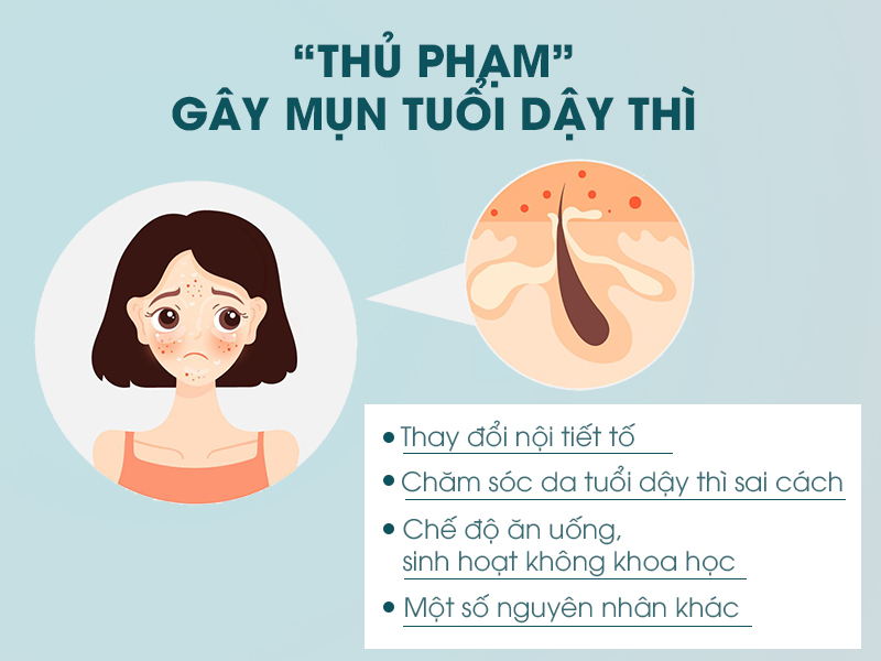 Bị mụn trong giai đoạn dậy thì không phải là tình trạng hiếm gặp ở các bạn nữ tuổi teen. Thậm chí, đây còn là tình trạng phổ biến gặp phải ở hầu hết các bạn trẻ trong độ tuổi mới lớn. Mặc dù, mụn tuổi dậy thì có thể hết theo năm tháng, nhưng cũng dễ trở nên phức tạp và khó kiểm soát bởi nhiều nguyên nhân. Trong đó, nổi bật phải kể đến một số nguyên nhân như: